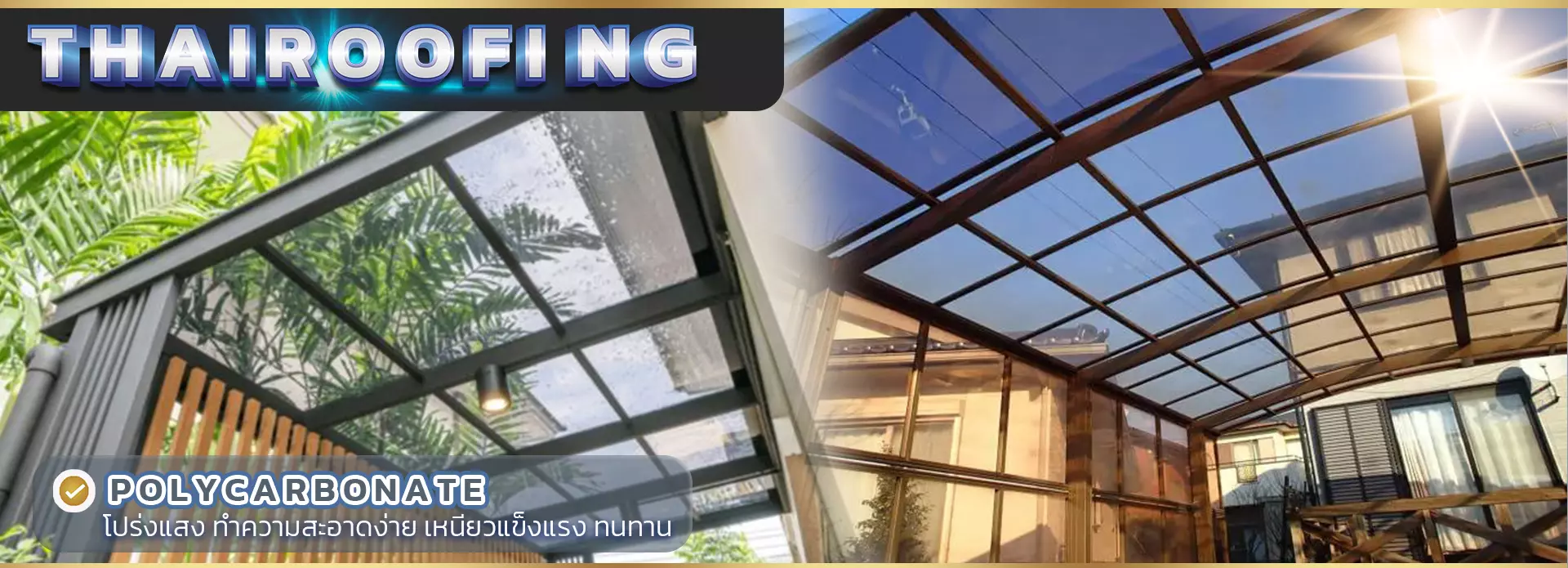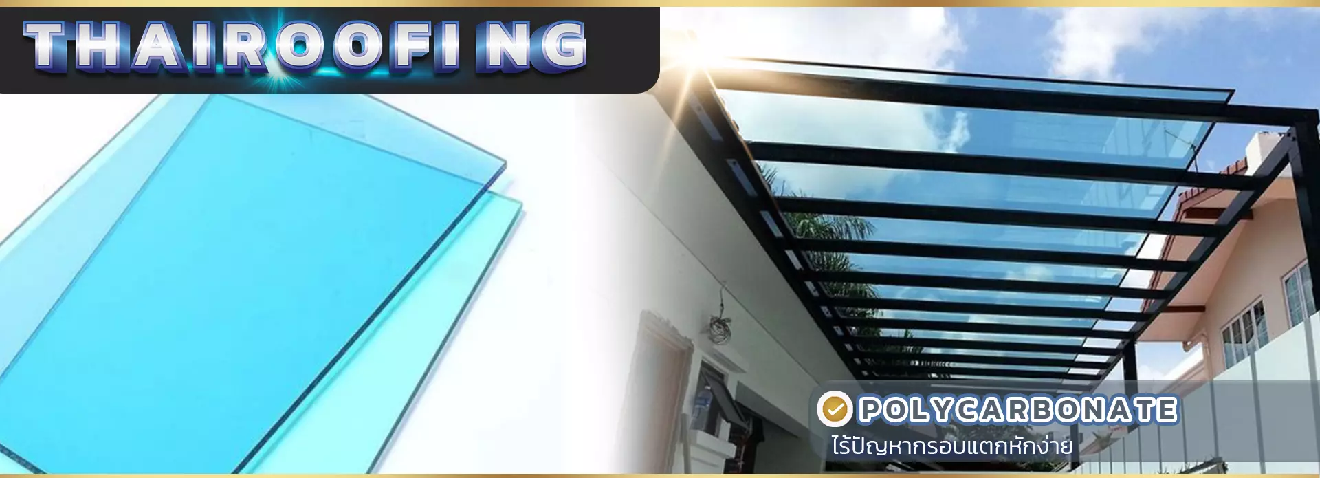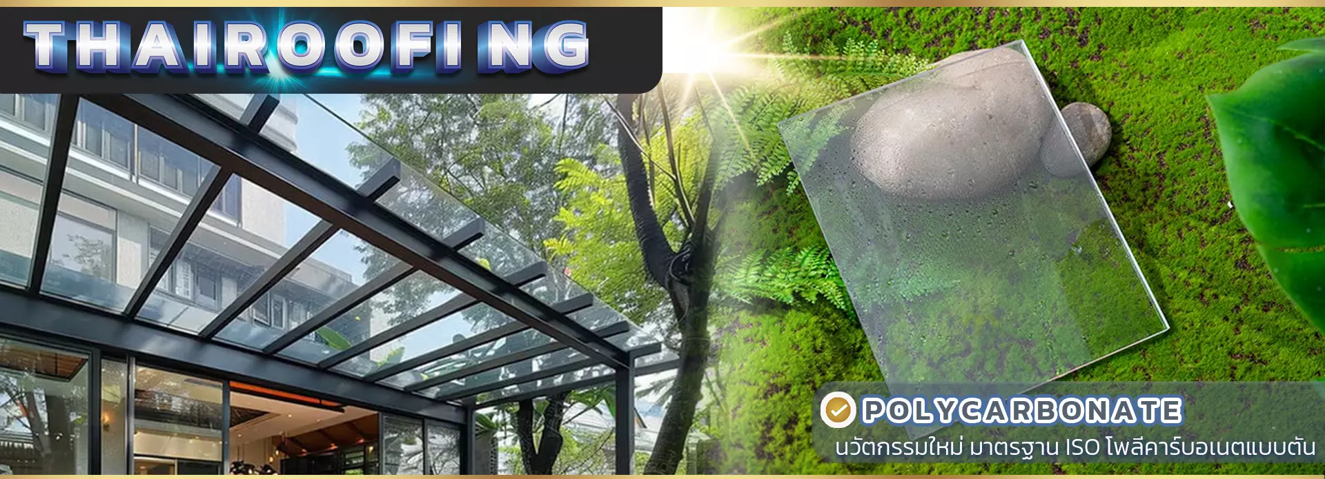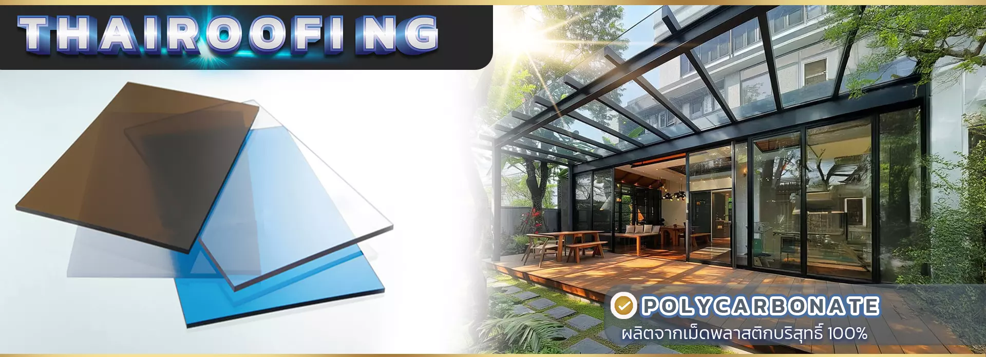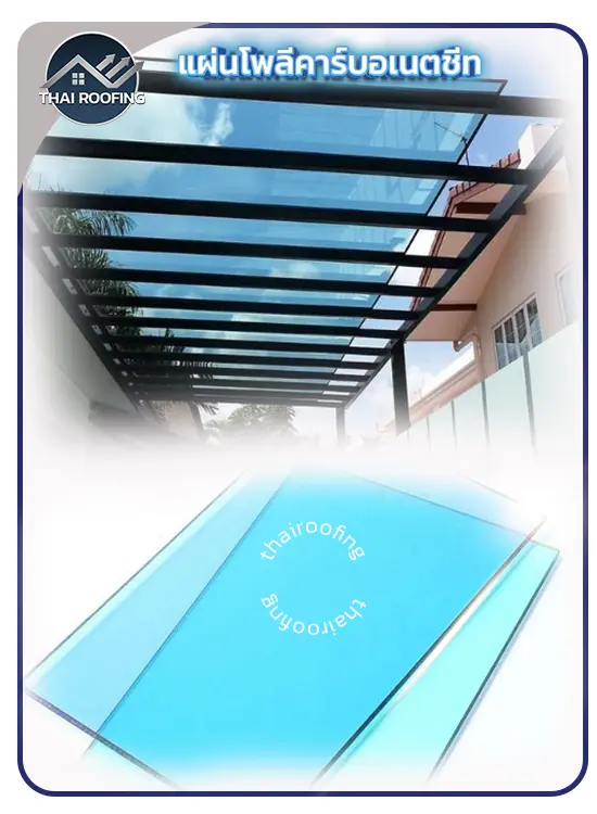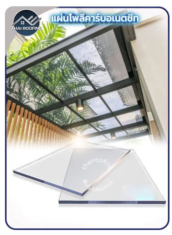 หลังคาโมเดิร์นปิดแผ่นด้วยโพลีคาร์บอเนตชีทแบบแข็ง (Solid Polycarbonate Sheet)